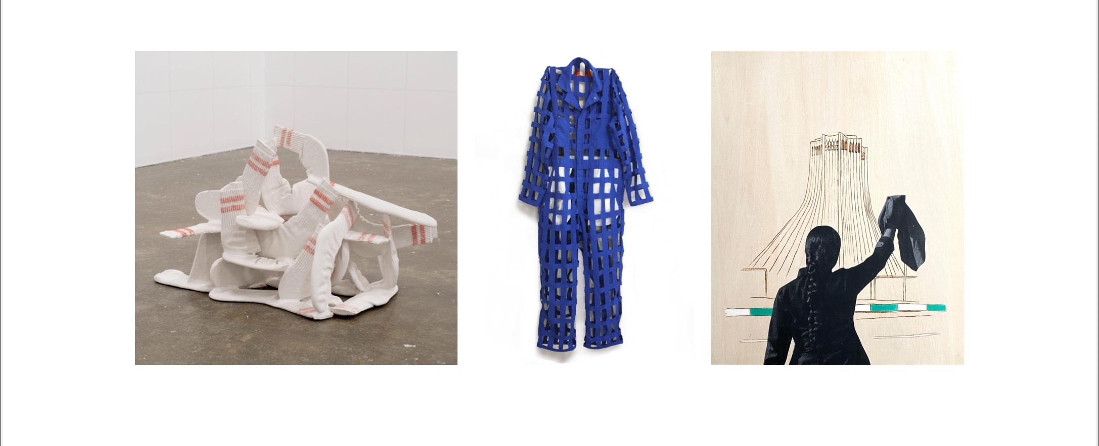 Bringing together the diverse practices of four DMV-area artists, UNFOLD engages with the significance and possibilities of garments beyond their practical and ornamental functions. The works of Hoesy Corona, Elliot Doughtie, HH Hiaasen, and Mojdeh Rezaeipour direct attention toward clothing’s power to expose, conceal, assimilate, distinguish, comfort, alienate, protect, and transform. When “unfolded,” clothing can be understood to mediate connections between public and private, human and non-human, self and other—in effect complicating these binaries. Through sculpture, textiles, drawing, mixed media, and more, UNFOLD positions clothing as a dynamic site of becoming, capable of organizing identities and setting them in motion.