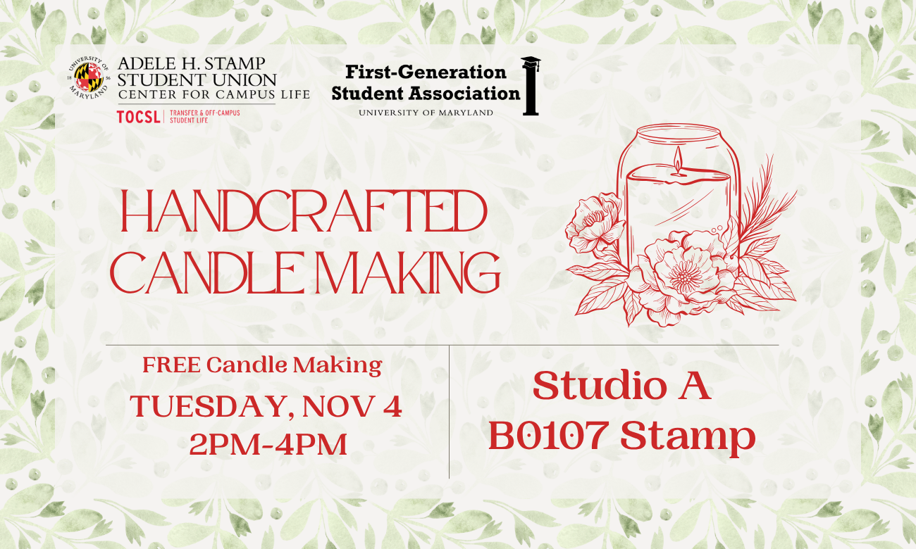 Candle Making w/ First Generation Student Association: November 4th, 2-4PM, Studio A