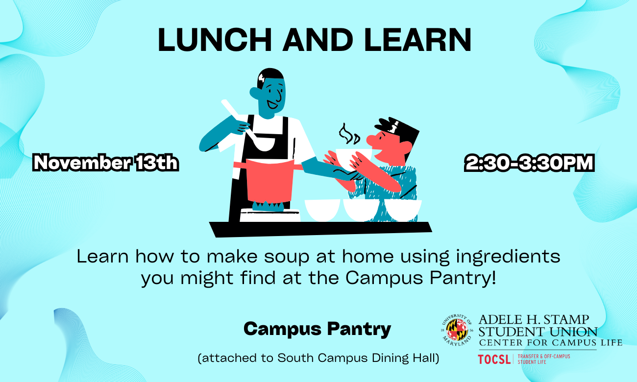 Lunch and Learn - Cooking Class w/ the Campus Pantry: November 13th, 2:30-3:30PM, Campus Pantry