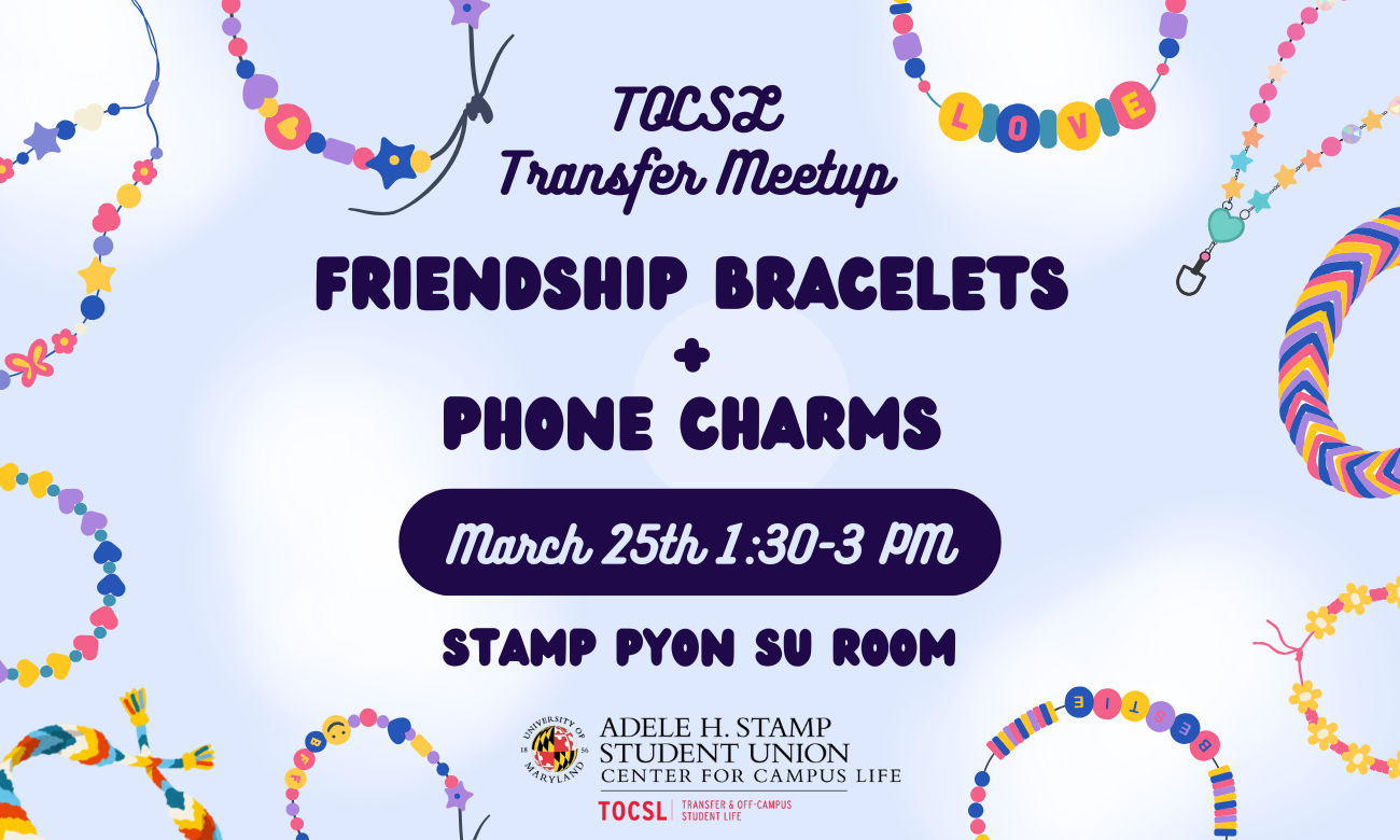 Transfer and Off Campus Student Life is located in the Engagement Office, ground floor of the Adele H. Stamp, down the hall from the Bookstore. Also feel free to contact us at 301-405-0986 or at TOCSL@umd.edu.