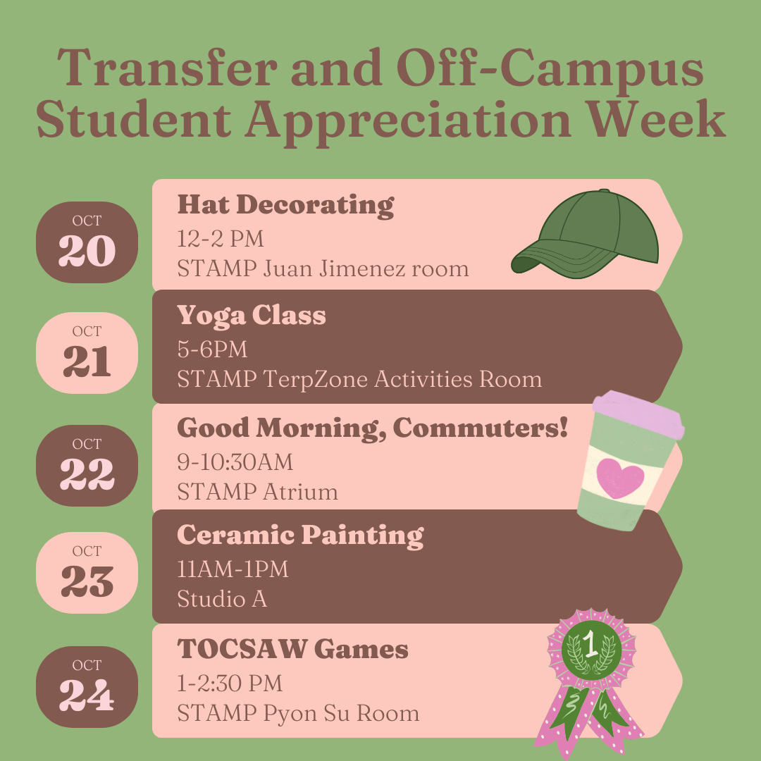 Transfer and Off-Campus Student Appreciation Week (TOCSAW): October 20-24th